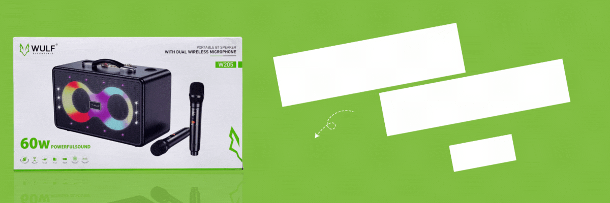 WULF ESSENTIALS W205 60W Bluetooth Speaker with Dual Wireless Microphones & RGB Lights